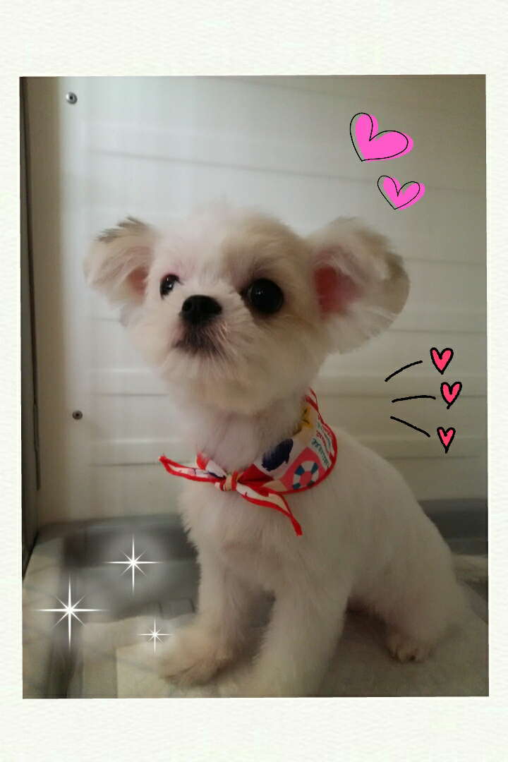 ☆くうちゃん初トリミング☆ 2016/08/04 Mixのくうちゃん 今回、生まれてはじめてのトリミングです くうちゃんは、まだ、4カ月なのに お利口にカットができました~ ま~るいお耳もすっごくかわいい~です またのご来店をお待ちしていります 毎日、暑い日が続きトリミングの予約が 混み合っています ご希望の日時が取りにくくなっております ご理解お願いいたします